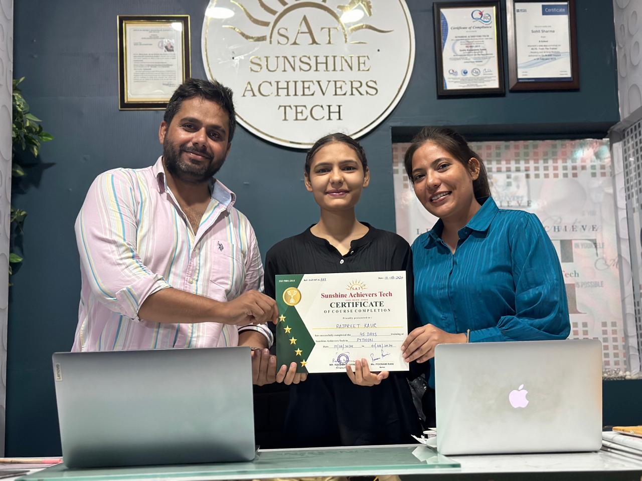 I enrolled my myself at Sunshine Achievers Tech 2months back. I have gained the knowledge of basic computer and valuable lessons from here. I highly recommend to everyone to join this institute for better learning skills. Specially thanks to Sohit sir, Simran mam and Muskan mam
